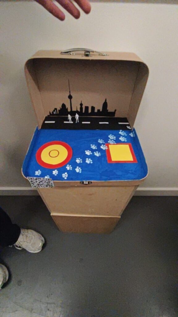 Im Februar 2025 trafen die niederländischen Schülerinnen und Schüler die Berliner und wohnten in den Gastfamilien. Gemeinsam besuchten alle Teilnehmenden spannende Ausstellungen, wie die Fotografiska im ehemaligen Tacheles und den deutschen Bundestag. Zum Abschied besuchten wir gemeinsam ein englischsprachiges Comedyprogramm. Diese Erlebnisse und Erfahrungen wurden in einem Kunstprojekt verarbeitet, bei dem die Teilnehmenden in binationalen Teams einen Pappkoffer (Symbol für “Travelling”) gestalteten. Zu jedem Koffer wurde außerdem eine sog. Soundcloud erstellt, die mittels eines QR-Codes abrufbar ist. So sind die Kunstwerke multiperspektivisch wahrnehmbar. Beispiele dafür sind in der Aula und im Kunstbereich des Inge-Deutschkron-Gymnasiums ausgestellt und erlebbar.
