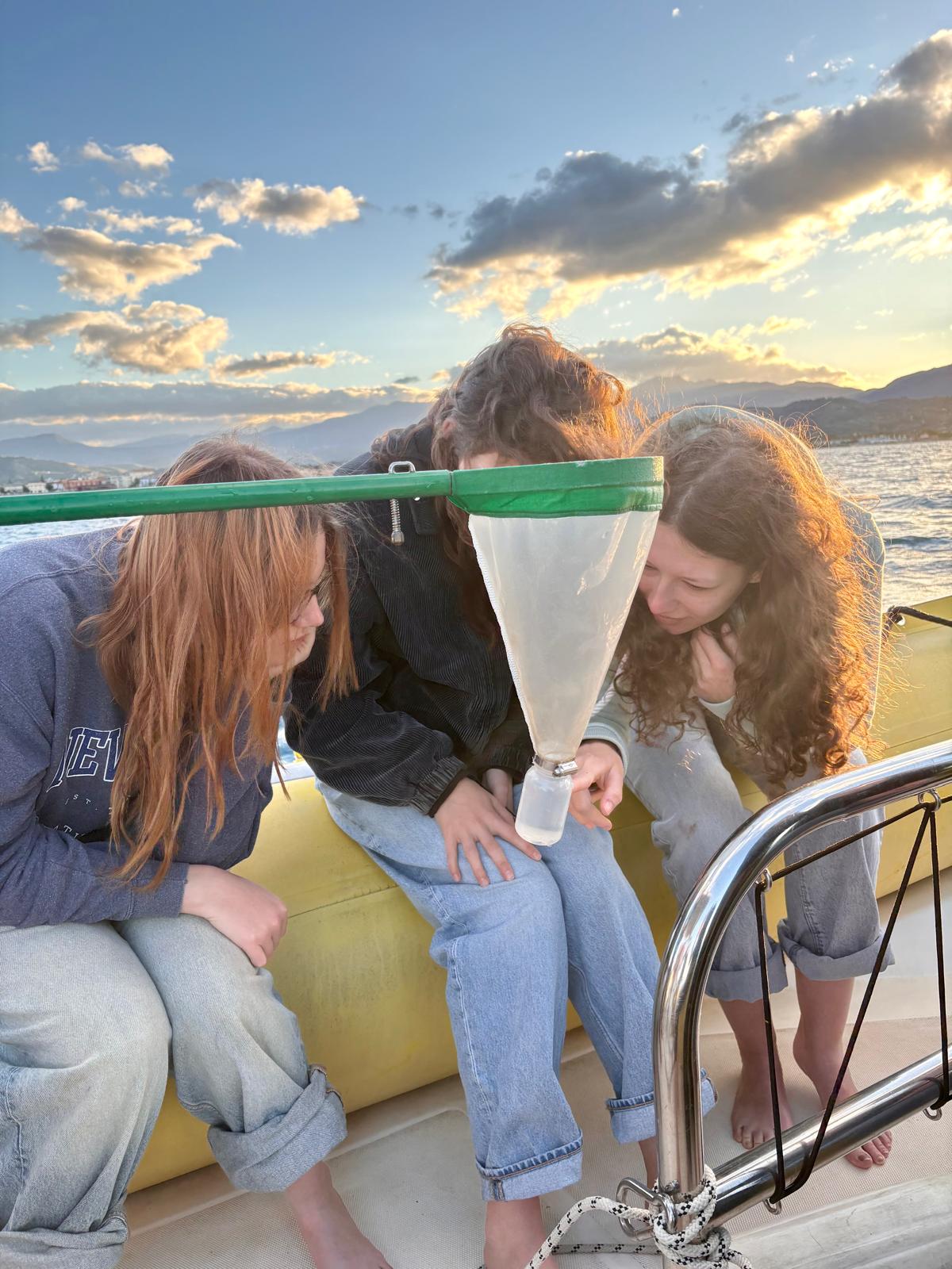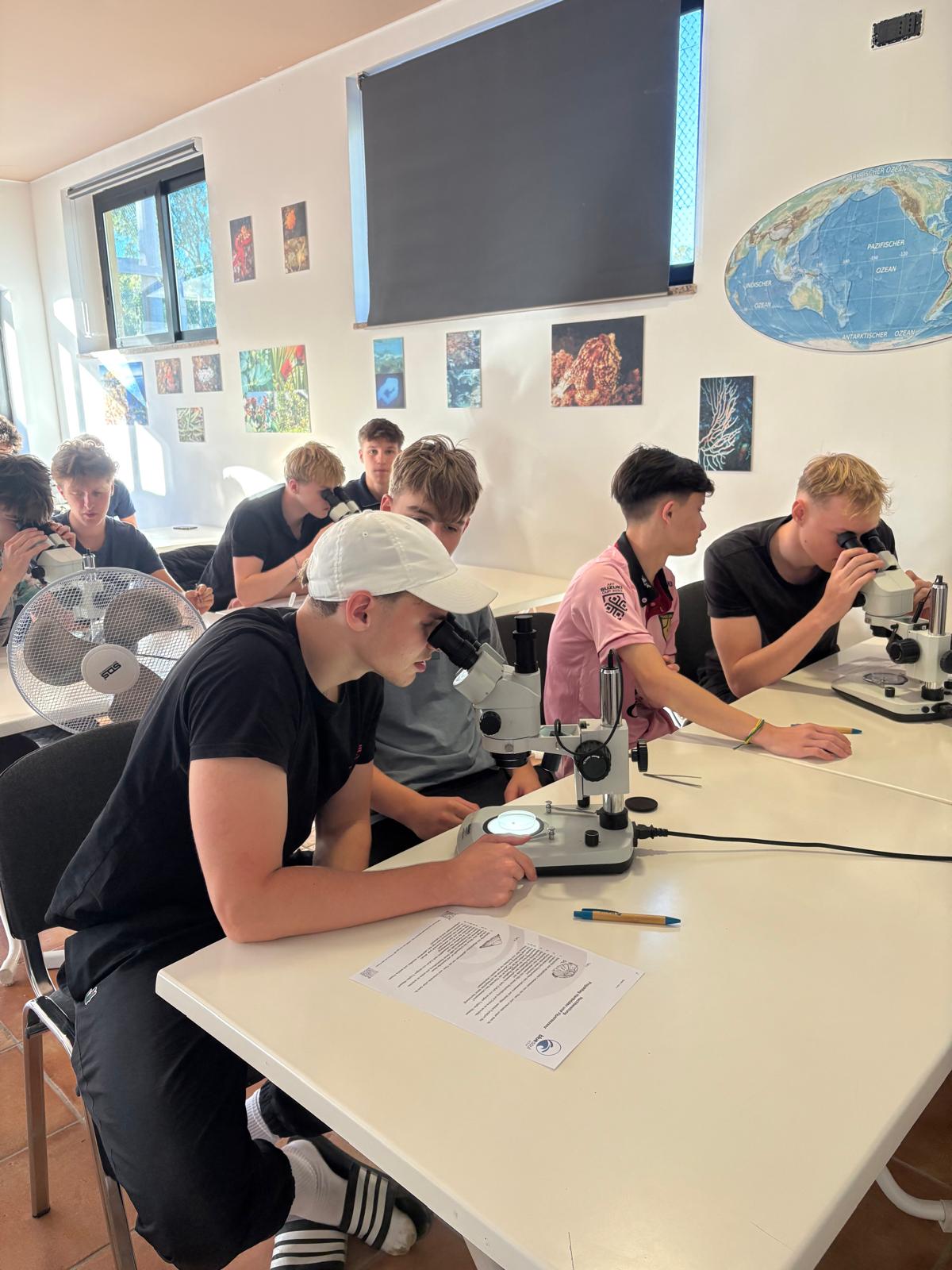 Besonders spannend war der Praxistag im Feldlabor: Mit Kescher, Pipette und Binokular untersuchten die Schülerinnen und Schüler Proben, die sie selbst am Morgen mit dem Boot und Müllergaze gesammelt hatten. Viele staunten, wie viel Leben sich in einem einzigen Tropfen Meerwasser verbirgt.