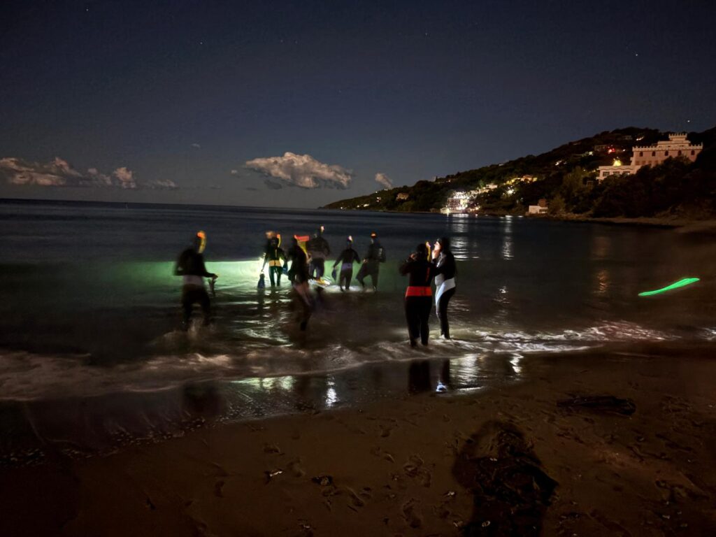 Jeder Projekttag beinhaltete eine passende sportliche Aktivität. Bei den Aktivitäten wurden die im Vortrag gewonnen Erkenntnisse in der Natur entdeckt und vertieft. So unternahmen die Schülerinnen und Schüler eine Kajaktour auf dem Fluss Alento, der im Meer bei Casal Velino mündet. Wir schnorchelten tags und nachts in den naheliegenden Küstenbereichen. Nachts konnten man auch besonders die fluoreszierenden Organsimen gut beobachten.